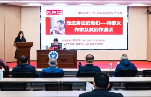 春风送暖,芳华绽放。值此 “三八” 国际劳动妇女节来临之际,3月7日上午,由福建省社科联、福建省图书馆联合主办东南周末讲坛第890期在福建省图书馆一楼多功能厅开讲。闽江学院人文学院教授黄长华应邀做客,以“走进身边的她们 ——闽都女作家及其创作漫谈”为题,带领现场读者走进闽都才女的文学世界,探寻八闽文化中女性的才情与精神力量。