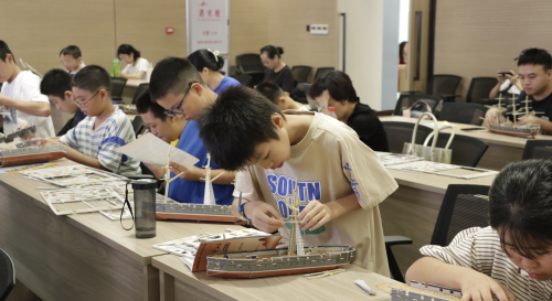 “闽图之夏”系列活动的对象为10-15岁的青少年,主办方针对此年龄段群体特点,在日程安排上穿插了多个互动性强、趣味性高的活动,小读者们在博物馆讲解员的带领下参观“近代舰船科普”主题展览、学习海军旗语、观看《船政学堂》纪录片,又在志愿者的指导和帮助下成功拼装了“扬武”号手工船模和罗星塔纸雕灯。
