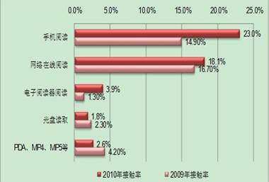数字阅读没有权威定义,一个较为宽泛的定义是:凡是利用任何数字媒体进行阅读的方式都是数字阅读。具体来讲,比如利用电脑、智能手机、MP4、MP5、PDA、光盘、阅读器等工具进行网页、数码照片、电子书、博客、电子地图以及网络小说等等的阅读都是数字阅读。数字阅读起源于互联网络的迅速发展,以及智能手机和掌上阅读器等数字载体的出现。互联网络的信息量庞大、覆盖面广、更新快,智能手机和掌上阅读器使用、携带方便等特点,都为数字阅读提供了快速增长的契机。因此随着互联网和移动信息技术的迅速发展,网络数字阅读也越来越被人们所接受。在由中国新闻出版研究院组织实施的“第八次全国国民阅读调查”中,2010年我国18—70周岁的国民数字化阅读方式的接触率相对2009年来说增幅最大。[1]