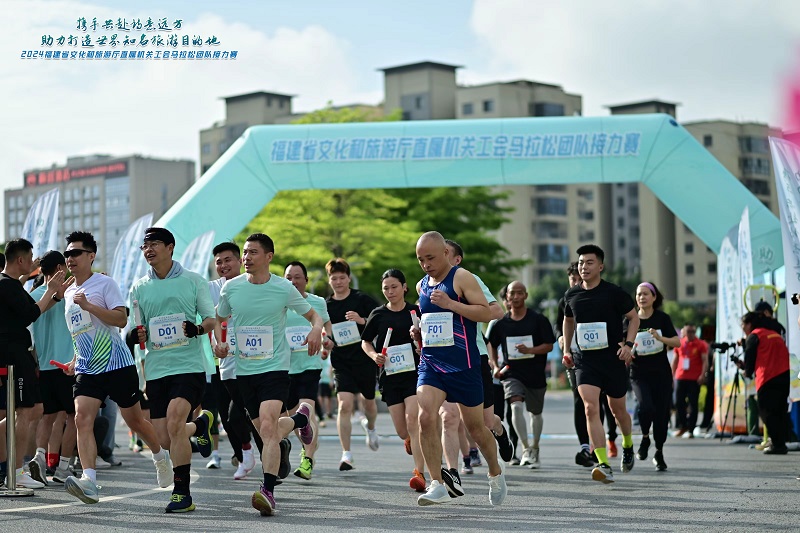 4月21日上午8时整,“携手共赴诗意远方,助力打造世界知名旅游目的地”——省文旅厅直属机关工会跑团接力赛,在福州飞凤山奥体主题公园鸣枪起跑。