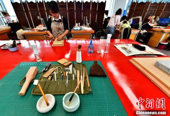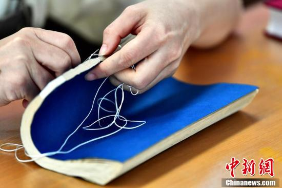 福建省图书馆的“图书医生”正在练习古籍订线。古籍修复是一门“三分技术,七分经验”的手艺,大家都是在工作与研修中不断学习与进步。