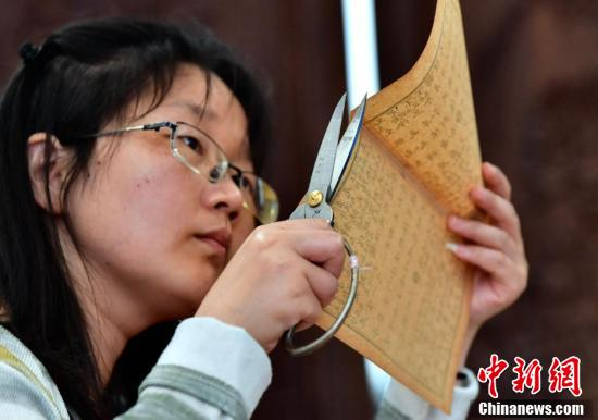 吴钰正在对修复的古籍进行剪齐。“90后”古籍修复师吴钰是福建省图书馆特藏中心修复组中年龄最小的一位成员,吴钰在此工作已逾3年。