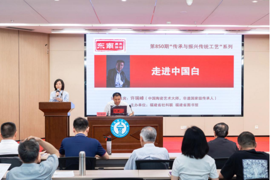 “中国白”是16世纪法国人对中国德化白瓷的雅称,这些精美瓷器经海上丝绸之路远销欧洲,以其温润如玉的美征服了当时的欧洲人,也在其后漫长的岁月中惊艳了全世界。5月10日上午,中国工艺美术大师、国家级非遗传承人、省政协委员许瑞峰走进省图书馆东南周末讲坛,以“走进中国白”为题,从“前世”“今生”“未来”三个维度,回溯德化白瓷的千年传承,讲述“山湖祖”许氏瓷塑流派在瓷器艺术上的守正创新之路,带领读者从德化白瓷的璀璨历史和当代辉煌中领略其惊人的工艺魅力。