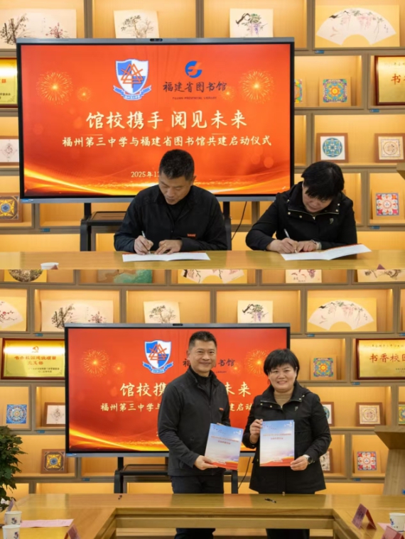 此次馆校共建签约活动,是福建省图书馆延伸公共文化服务触角的重要举措,也是双方深化合作、共谋发展的良好开端。未来,福建省图书馆与福州第三中学将以共建协议为依托,充分发挥各自优势,在资源共享、活动共办、品牌共建等方面开展深度合作,共同服务于青少年素质教育与终身学习体系的构建,为推动教育高质量发展、助力文化强省建设的宏伟蓝图变为现实注入源源不断的书香力量。