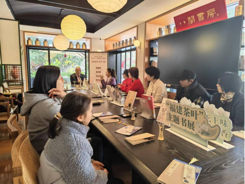 长桌正中,“福建茶文化”主题图书展成为一道雅致的文化风景线。《福建茶文化十讲》《福州茉莉花茶》等精品图书整齐陈列,静静诉说着福建茶叶的历史脉络与文化底蕴,吸引着读者纷纷驻足、凝神细读,感受八闽文化的悠远绵长与独特魅力。