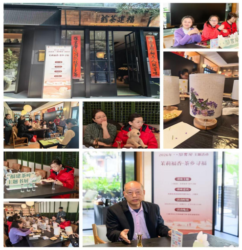 3月14日,2026年“八闽书房”主题活动〔寻福卷〕“茉莉福香・茶乡寻福”在“八闽书房”公共阅读新空间・熹茗福建茶馆举办。听茶史、品茶香、制手作、览书展,读者们在茉莉芬芳与翰墨书香中,细细品味闽都独特的人文韵味。