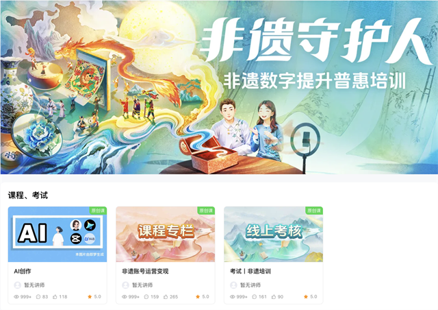 依托平台资源优势,参训学员围绕短视频创作、直播运营、AI应用、非遗变现等数字化前沿模块、50节精品视频课程展开学习,培训期间,全体学员累计学习时长突破4400小时,人均学习时长超3小时。培训通过“规模化教学+精准化指导”的学习模式,有力提升了非遗传承人群的数智素养、强化了非遗传承主体的新媒体传播能力,也为非遗与文旅融合、与市场接轨提供了人才储备与内容基础。