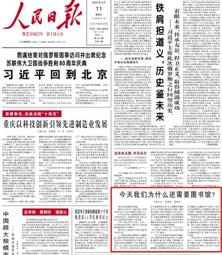 人民日报头版:今天我们为什么还需要图书馆?