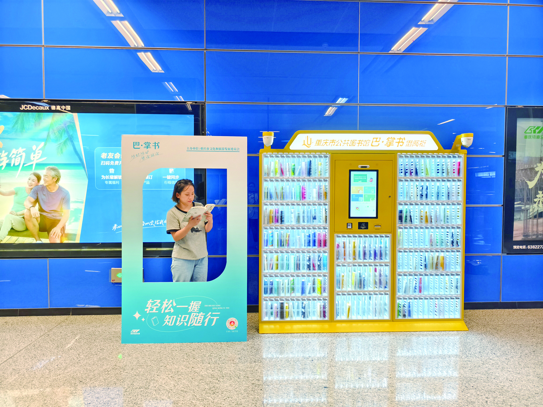 在重庆轨道交通3号线两路口站,乘客张女士熟练地走到一台明黄色的智能柜前,用手机扫码、挑选,不到30秒,一本巴掌大小的《昆虫记》便被她借走了。“等车、坐车的时间不再无聊,变成了和孩子共享的阅读时光。”她笑着说。